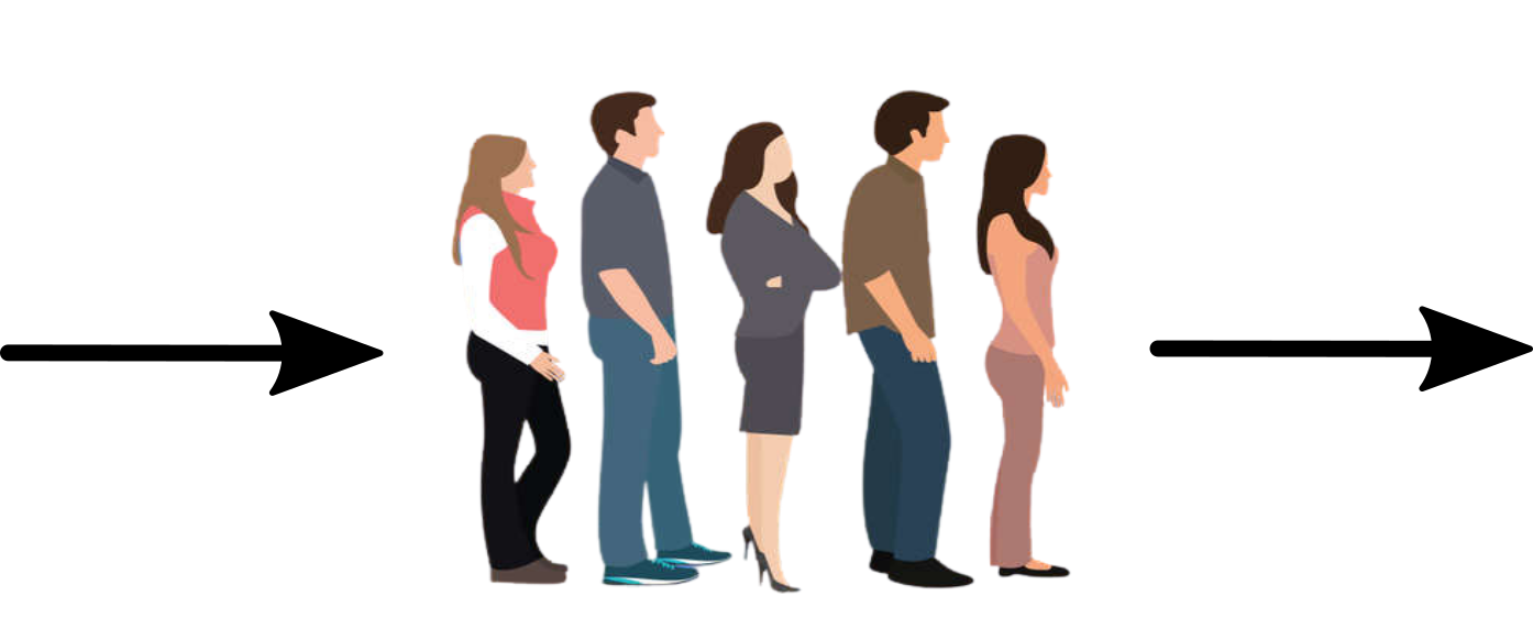 Une structure de file (penser à une file d'attente) est associée à la méthode FIFO (First In, First Out) :